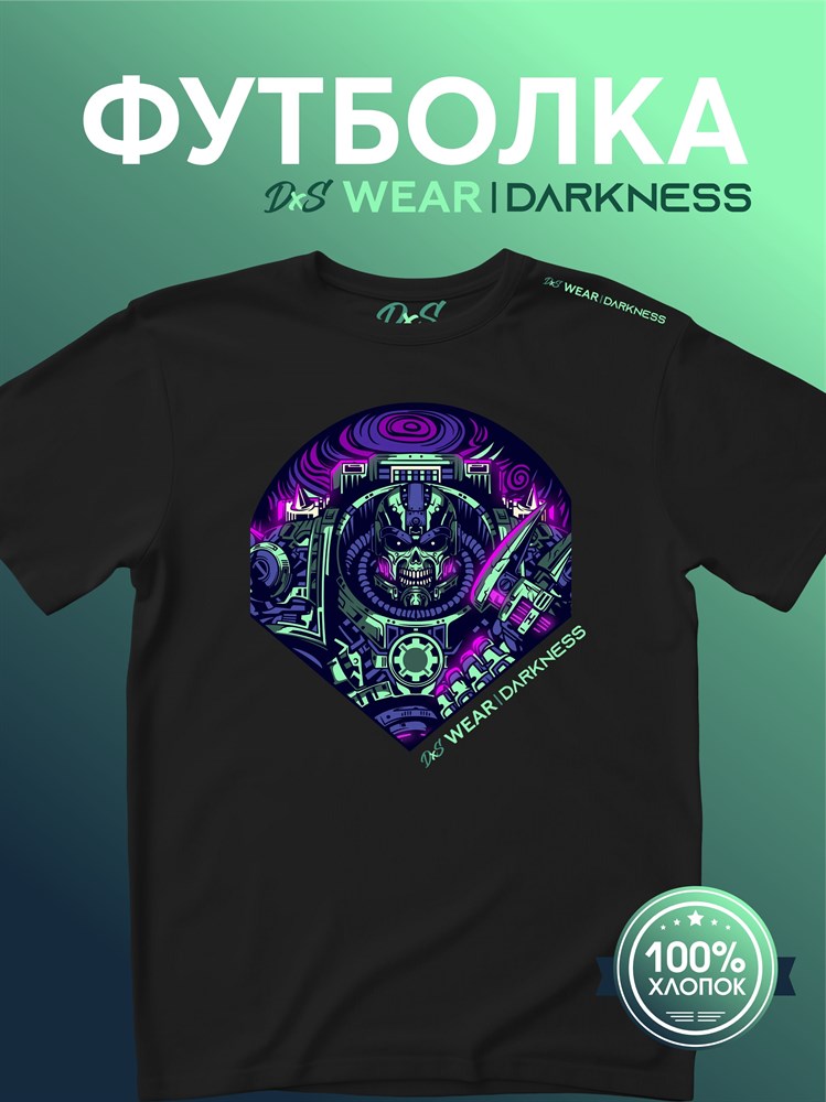 Футболка черная с коротким рук. DXS WEAR - DARKNESS WARHAMMER (100%хлопок)